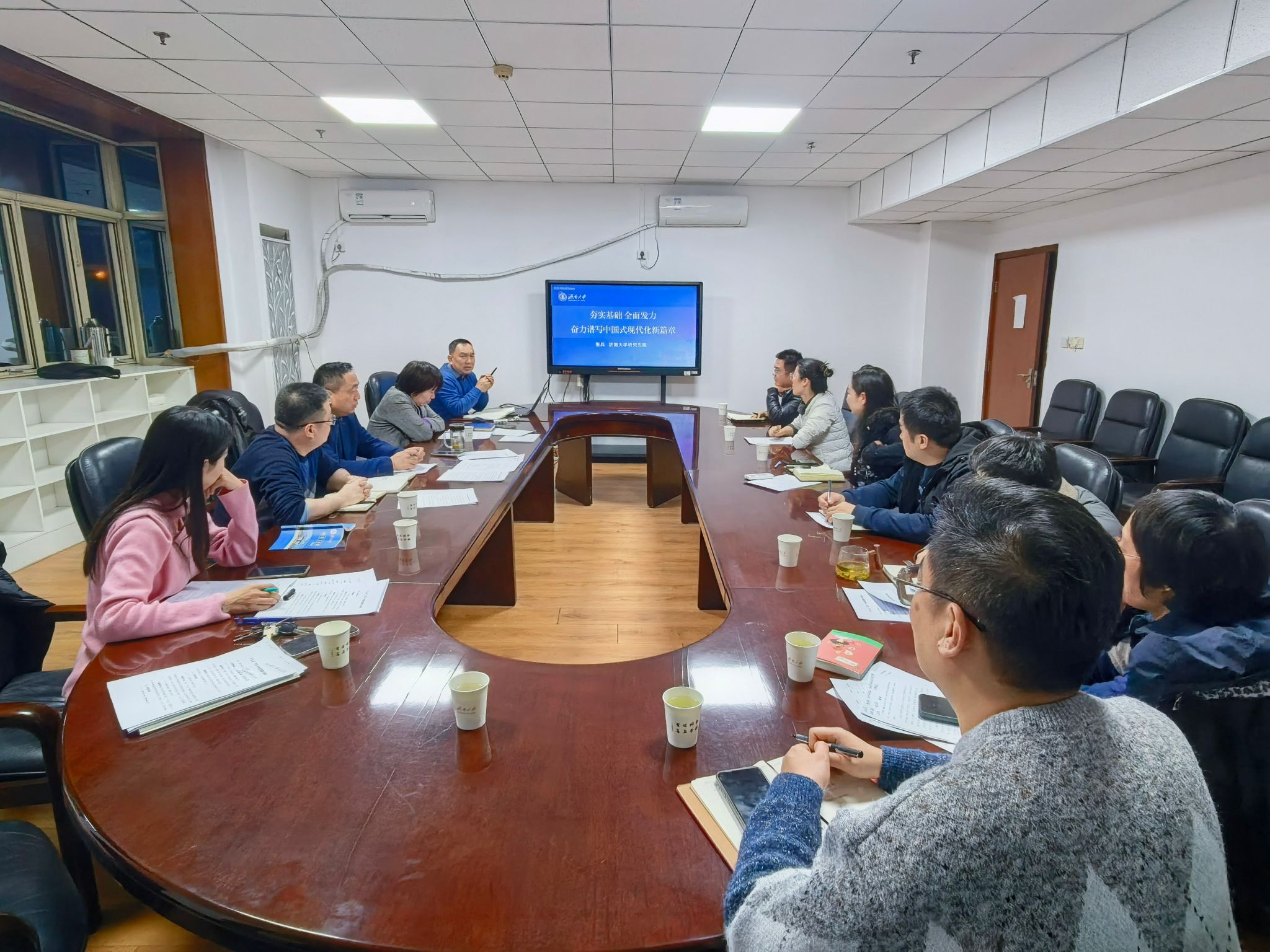 2025年12月16日,研究生院党支部召开全体党员大会,专题学习党的二十届四中全会精神。党的二十届四中全会是在我国进入基本实现社会主义现代化夯实基础、全面发力关键时期召开的重要会议,为新时代研究生教育工作指明了方向。
