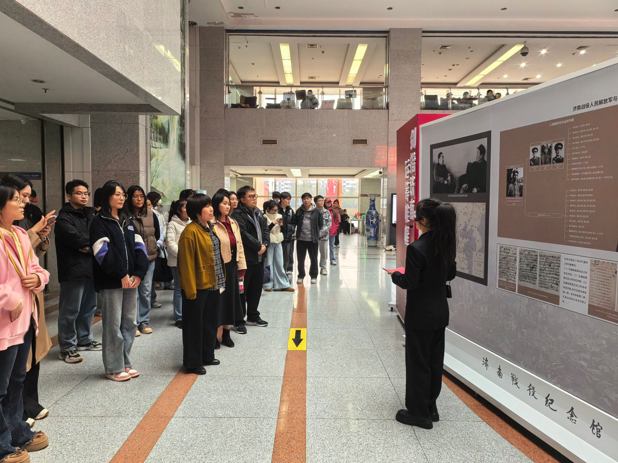 本次史实展由济南市退役军人事务局与济南大学联合主办,以济南战役为主线,分为“伟大胜利 历史坐标”“八天八夜 鏖战古城”“褒扬英烈 探索创新”等八个部分,通过珍贵史料和实物再现济南战役的烽火岁月。参观过程中,党员同志们仔细观看历史照片、文物和文献资料,重温1948年华东野战军经过八昼夜激战解放济南的光辉历史。大家深切体会到“爱党爱军、依靠人民、英勇顽强、敢于胜利”的济南战役精神,并纷纷表示,要将红色基因融入血脉,筑牢信仰之基,以实际行动践行初心使命。